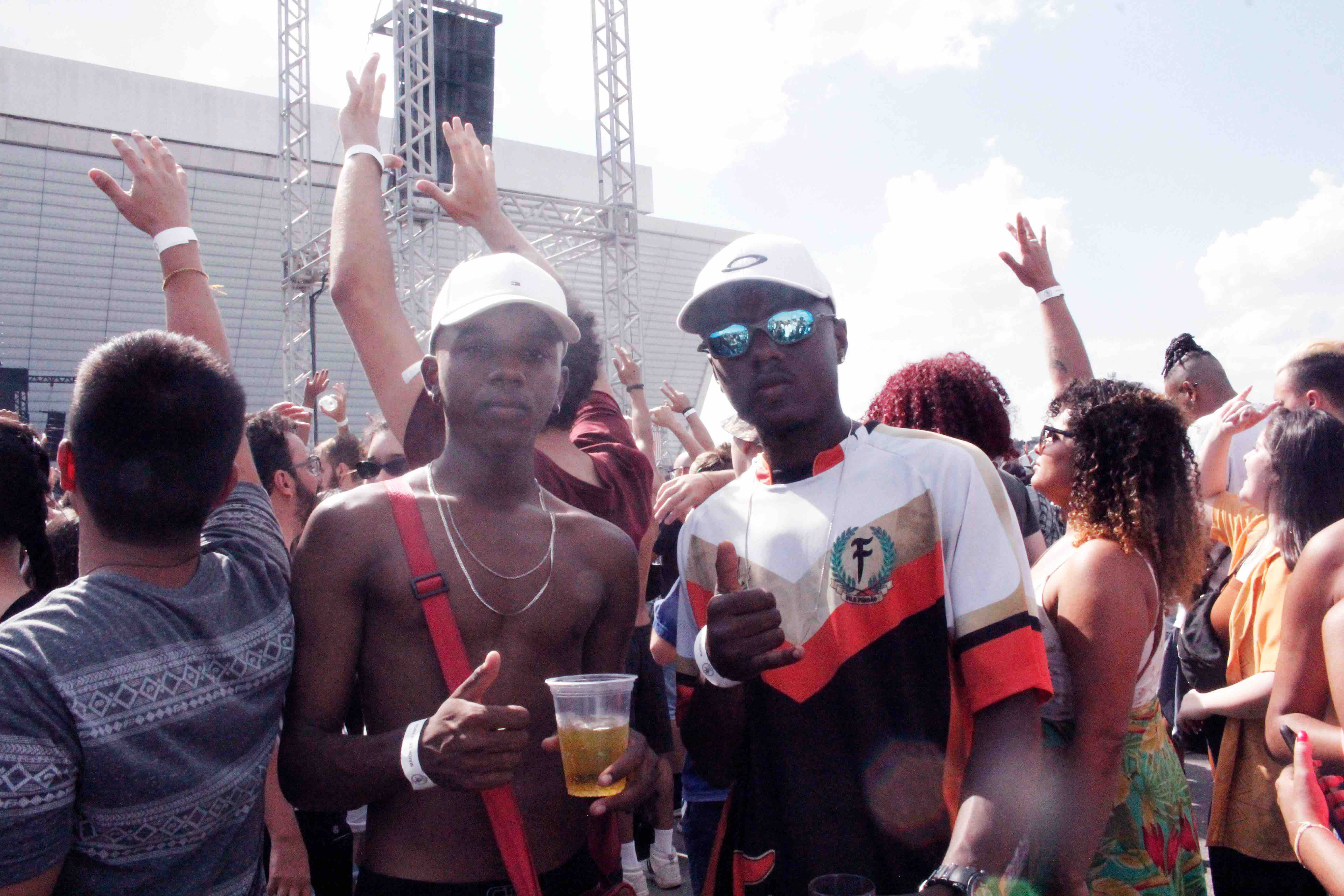 “Eu não gosto desse lance da divisão. Se eu pensar como mercado vou entender, tem tênis mais caro e tênis mais barato né? Pensando enquanto mercado faz algum sentido. Mas eu, enquanto artista, não gosto, por isso, eu sempre tento colar na galera que está do outro lado”, explicou o mineiro. “Olha que aqui estamos em um festival que tem um preço acessível. Não notei tanto diferença de classe, mas pra curtir, todo mundo junto é mais legal”.